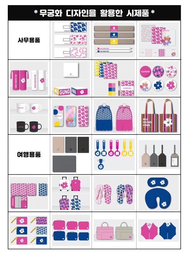 새로 개발된 무궁화 디자인 시제품은 텀블러, 에코백, 노트 등의 사무용품과 여권 지갑, 네임텍 등의 여행용품 총 30여 종이며 정부 및 공공기관 등의 홍보에 활용할 수 있도록 장려할 계획이라고 전했다.