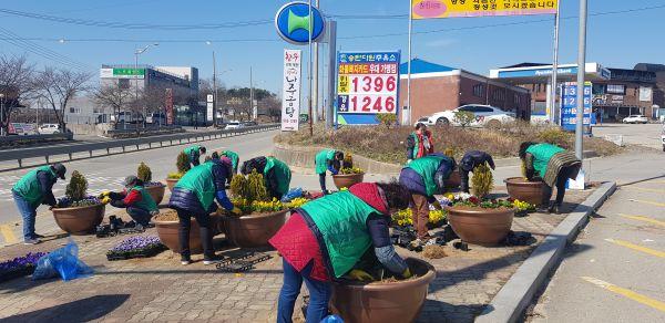 평택시 중앙동 새마을부녀회는 16일 서정리역 앞 등에 대해 봄 꽃 심기를 실시했다.