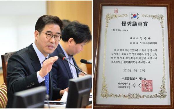 김 의원은 2019년 행정사무감사에서 지역 활성화를 위해 시작된 도시재생사업과 마을건축가 제도가 도입 취지와 달리 행정 편의적으로 운영되고 있음을 지적하며 지역 주민이 중심이 되는 정책 운영 방안을 제시했고 서울주택도시공사의 불법하도급 사건에 대한 재발방지 대책 마련을 촉구하는 등 서울시 및 산하기관의 행정업무 전반에 대한 날카로운 감시·감독을 실시한 공로를 인정받았다.