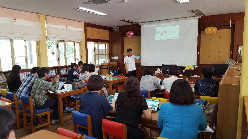 수업 참관 시간이 끝난 후에는 도서실에서 디지털교과서 활용을 위한 교사 연수 시간이 마련되었다. 거제초 서동준 교사가 연수를 진행하였는데, 프로그램은 크게 ▲ 디지털교과서 활용 방법 ▲수업시간에 활용하기 좋은 스마트 어플로 나누어졌다. 참관 교사들은 거제초에서 제공한 태블릿PC를 다루어보며 디지털교과서와 스마트교육에 대한 이해를 높일 수 있었다.