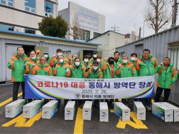 코로나19 확진자 없는 ‘청정 동해’를 위해 동해시 지역자율방재단 이성우 단장을 비롯한 10개동 250여명의 단원들은 바쁜 생업 중에도 지역 재난안전의 파수꾼으로서 전염병 재난예방 등 봉사활동을 실시하고 있다.