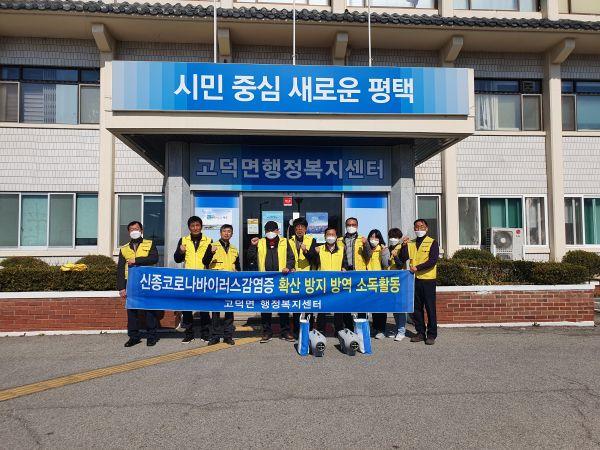 평택시 고덕면 행정복지센터는 지난 16일 코로나19의 지역사회 확산을 차단하기 위해 방역활동을 실시했다.