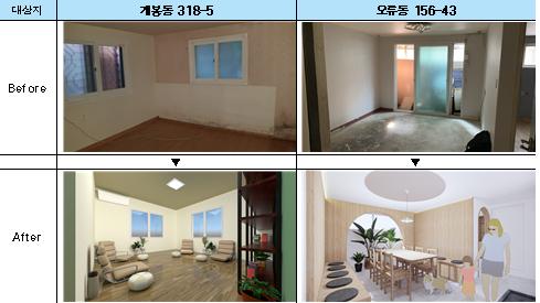 구로구 개봉동의 주택 반지하 공간은 지역 내 젊은 주부들을 위한 자기계발 공간과 주민소통방으로 성북구 종암동의 주택 반지하 공간은 주민들이 이용할 수 있는 ‘공유주방’으로 각각 리모델링해 운영된다.