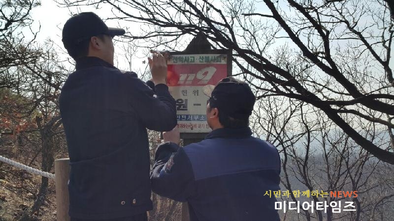 | 봄철 산악사고 대비 위치표지판 정비 모습. <ⓒ미디어타임즈> |