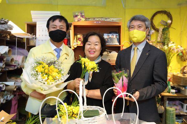 이날 꽃 도매 화원에는 국민은행 경인지역 인천본부의 지점장들이 함께 참석해 이강호 구청장과 함께 화훼농가를 돕기 위해 꽃선물 릴레이에 동참했다.