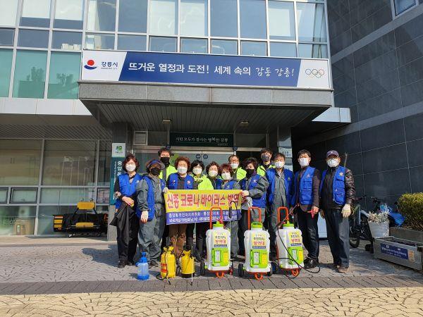 바르게살기운동 강릉시 중앙동위원회는 지난 16일 오전 10시에 코로나19 확산 예방을 위해 관광객이 많이 찾는 월화거리 공공시설물과 인근 상가를 중심으로 자율방역활동을 실시했다.