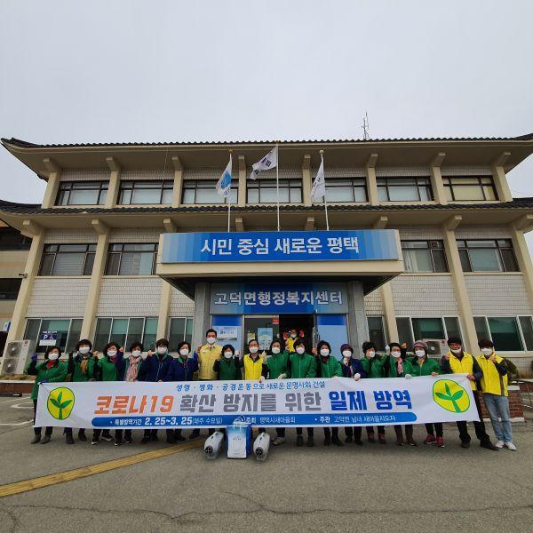 평택시 고덕면 새마을부녀회는 지난달 25일부터 매주 수요일마다 코로나19 확산 방지를 위해 버스승강장, 체육시설, 다중이용시설 등에 대한 지속적인 방역활동을 전개하며 지역사회 귀감이 되고 있다.
