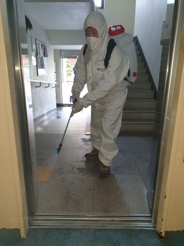 이장협의회 회원 및 관리사무소 직원들은 총 13개소 아파트와 60여 개소 대형 상가 엘리베이터 내부를 합동으로 소독하는 등 방역활동에 구슬땀을 흘렸다.