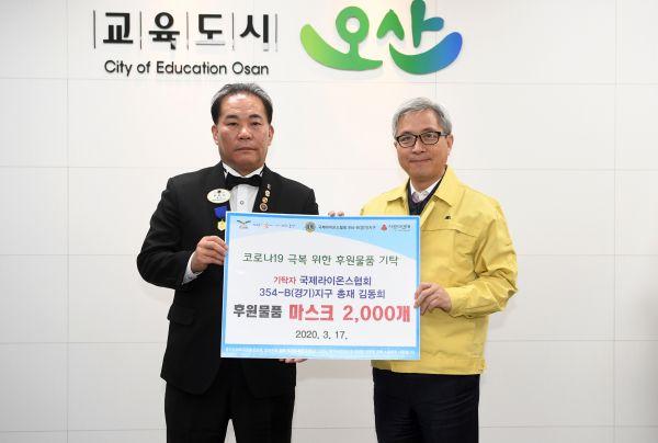 오산시는 17일 코로나 19 극복을 위해 국제라이온스협회 354-B지구에서 마스크 2,000개를 기탁했다고 밝혔다.