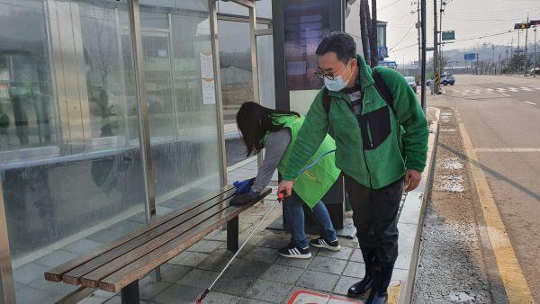 이날 방역에서는 동남아파트에서 28사단, 상패동 행정복지센터에서 신한대학교 구간에 위치한 19개의 버스정류장을 소독했다.