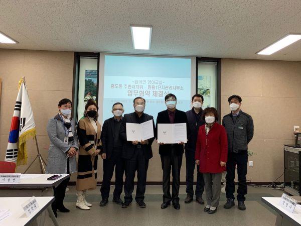 이번 업무협약은 흥도동 주민자치위원회 교육프로그램인 원어민 영어교실 수업 진행을 위해 필요한 수업 공간 대여를 중점으로 체결됐다.