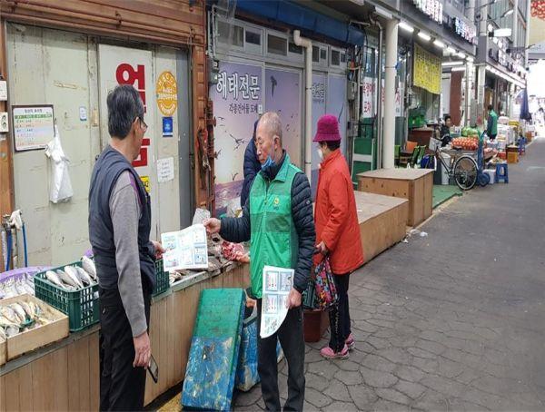 평택시 송북동 새마을지도자는 지난 17일 사람이 많이 이용하는 전통시장에서 관내 지역주민을 대상으로 코로나19 감염 확산 방지를 위한 ‘사회적 거리두기 캠페인’을 진행했다.