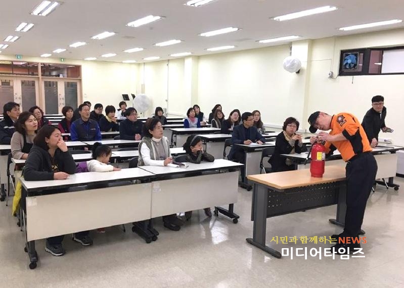 [미디어타임즈=문상수 기자] 인천남부소방서(서장 김성기) 주안119안전센터는 화재예방에 대한 안전의식을 고착시키고자, 9일 인천여성복지관(남구 주안동 소재)을 방문하여 “소방안전교육”을 실시했다.이날 교육에는 복지관 직원 및 수강생 등 40여명이 참여하였으며, 주요 내용으로는 ▲소화기 및 소화전 설비를 이용한 초기진화 요령 ▲유사시 피난기구 등을 활용한 대피방법 ▲심폐소생술 및 응급처치 요령 등을 교육하였다. 또한, 주택에 의무적으로 설치해야하는 소방시설(소화기 및 단독경보형감지기)에 대한 홍보도 적극 안내하였다.소방서 관계자는 “화재 발생 시 초기에 신속한 화재진압이 이뤄지지 않으면 인명 및 재산피해가 급속도로 커지는 만큼, 직원 여러분은 소화기 및 소화전 사용법 등을 반드시 숙지하여 유사시 대처해 줄 것”을 당부하였다.