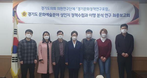 경기도의회 연구단체 ‘경기문화정책포럼’ 회장 정윤경 의원 은 지난 12일 경기도의회 제1간담회실에서 ‘경기도 문화예술분야 성인지 정책수립과 이행 분석 연구’에 대한 연구용역 최종보고회를 개최했다.