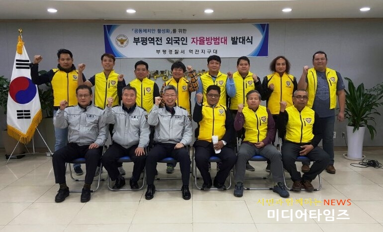 [미디어타임즈=문상수 기자] 최근 급증하는 부평역 일대 외국인 치안수요에 선제적·효과적으로 대처하기 위해 부평경찰서(서장 김봉운) 역전지구대에서 자체 외국인 자율방범대를 결성하였다. 역전지구대(지구대장 유충기)는 3월 8일 17시 부평지하상가 회의실에서 관내 외국인 거주자 11명이 참석한 가운데 「부평역전 외국인 자율방범대」 발대식을 개최했다.「부평역전 외국인 자율방범대」는 부평역 인근에 있는 미얀마사원을 중심으로 주말 등 공휴일에 대거 밀집하는 외국인들에 대한 범죄예방 및 문화적 차이로 인한 오해불식 및 홍보 활동 등 공동체 치안활동을 통한 주민불안감 해소를 위한 취지로 결성되었다.특히 외국인 범죄예방활동은 물론 외국인에 대한 현장치안 경험기회 부여로 자긍심 부여와 함께 범죄현장에서 발생하는 외국인에 대한 소외 및 냉대감 해소에도 큰 기여가 될 것으로 예상된다.외국인 자율방범대는 앞으로 미얀마 사원 주변을 중심으로 부평역 일대에서 주말 및 공휴일에 경찰과 함께 범죄예방 및 치안질서 확립을 위한 합동순찰 활동 및 지구대와 핫라인을 구축하여 범죄신고 요원의 임무 수행, 「부평서 다문화 치안봉사단 활동의 날」합동캠페인 등의 활동을 실시하게 된다.유충기 지구대장은 “다문화시대에 발맞춰 외국인 자율방범대와 협력하여 부평역 일대에 운집하는 외국인들의 소통창구 역할 및 주민불안감해소를 위한 공동체 치안활동을 빈틈없이 해 내겠다‘며 강한 의욕을 보였다.
