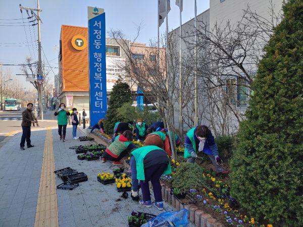 이종성 서정동장은 “코로나19로 어렵고 힘든 시기를 보내고 있지만 이번행사를 통해 식재된 봄꽃이 주민들에게 희망의 메시지로 전달되기를 기원한다”며 “민관이 협동해 지속적인 방역활동을 펼쳐 코로나19 극복을 위해 최선을 다할 것을 약속드린다”고 감사의 말을 전했다.