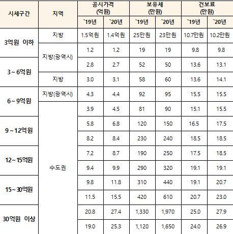 공동주택의 대부분을 차지하는 시세 9억원 미만 주택은 2019년 1년간 시세변동분은 반영하되, 현실화율은 2019년 수준을 유지했다.