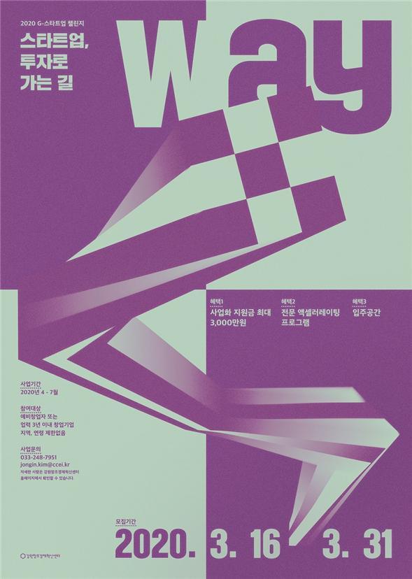 강원창조경제혁신센터가 성장 잠재력 높은 스타트업을 발굴·육성하고자 추진하는 ‘2020년 G-스타트업챌린지’ 참가자를 모집한다고 밝혔다.