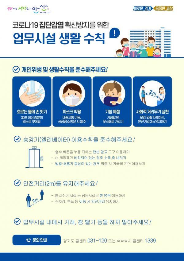 안산시는 코로나바이러스감염증-19 집단감염 확산방지를 위해 관내 200여 집합건축물을 대상으로 예방수칙 안내 홍보를 통해 주의를 당부했다고 19일 밝혔다.