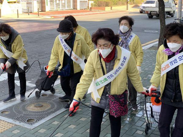 주민자치회, 새마을지도자협의회, 자율방범대가 경로당 13곳, 어린이놀이터·소공원 10곳 등을 대상으로 매일 2차례씩 소독을 하고 있다.