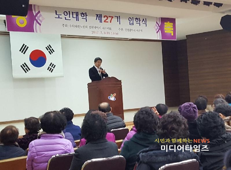| 대한노인회 인천서구지회 부설 노인대학 입학식 사진. |