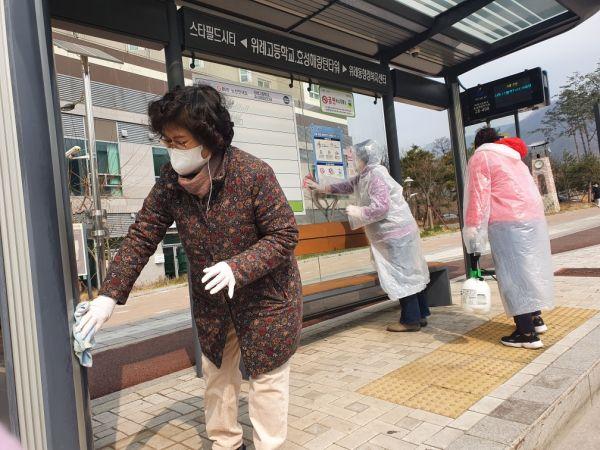 하남시 위례동 통장단은 지난 18일 코로나19 예방 및 확산방지를 위해 관내 버스정류장 10여개소와 근린6호 공원 체육·편의 시설에 대해 방역을 실시했다.