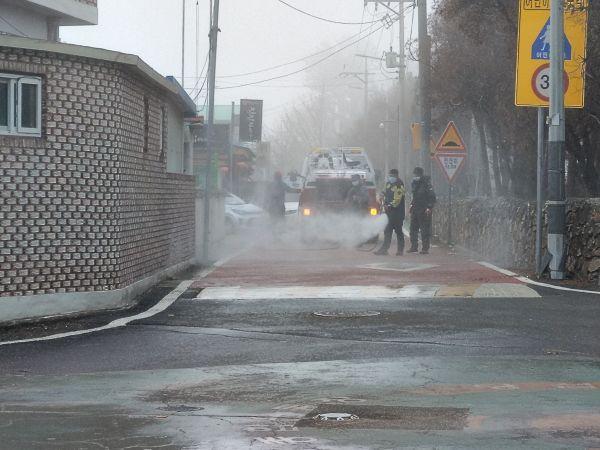 군부대 제독차량은 주요도로 방역을, 면사무소 방제차량은 간선도로 방역을 도맡았다.
