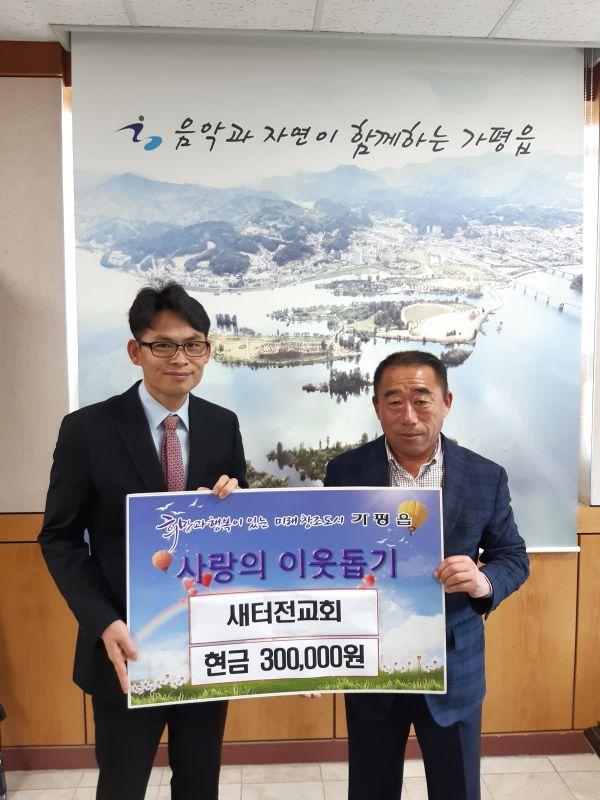 가평읍 소재 새터전교회 목사님이 지난 18일 가평읍사무소를 방문해 '코로나19' 극복을 위해 써달라며 지난 주일 모금한 헌금 30만원을 기탁했다.