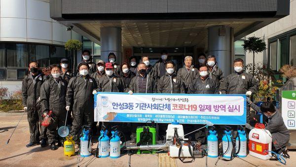 코로나19 확산을 막기 위해 안성3동 통장단협의회가 방역에 총력을 다하고 있다.