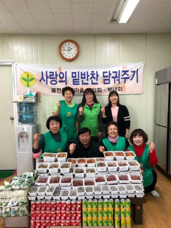 불현동에서 매월 운영되는 소외계층 밑반찬 지원 사업은 새마을부녀회와 지역사회보장협의체의 협력사업으로 결식의 우려가 높은 저소득 독거어르신과 장애인 가구에 밑반찬을 전달하며 복지사각지대에 있는 소외된 이웃에게 필요한 복지서비스를 연계하고 있다.