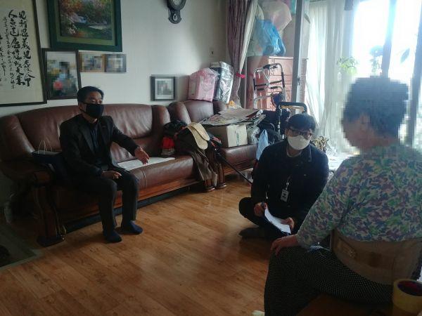 이날 최 동장은 기초생활수급자를 방문해, 감염병 예방을 위한 안내는 물론, 여러 가지 개인문제에 관해 고충상담을 실시하고 건강, 식생활 상태 및 가족과의 교류는 어떠한지도 살폈다.