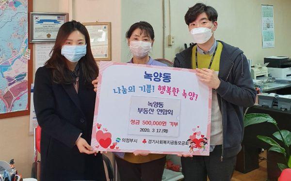 녹양동 부동산연합회는 지난 17일 관내 어려운 저소득층 아동들에게 꼭 전달해 달라며 회원들이 모은 성금 50만원을 녹양동 주민센터에 기부했다.