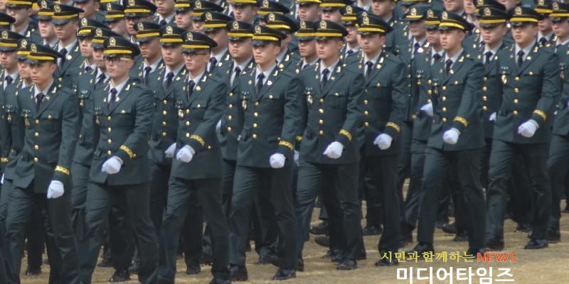 | 신임 장교들이 8일 충남 계룡대 연병장에서 열린 장교 합동임관식에서 행사장에 입장하고 있다. (사진/ⓒ 미디어타임즈) |