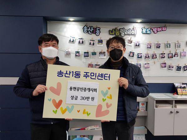 의정부시 용현공인중개사회는 지난 18일 송산1동 주민센터에 관내 저소득계층을 지원하기 위해 성금 30만원을 기탁했다.