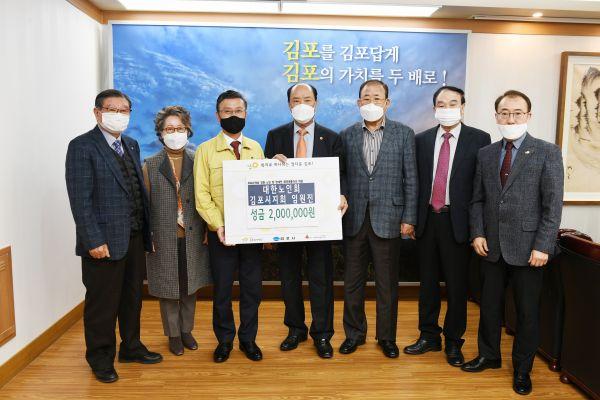 대한노인회 김포시지회는 지난 18일 김포시청을 방문해 코로나19 대책본부 관계자들의 노고를 격려하면서 100만원 상당의 물품을 기탁했다.