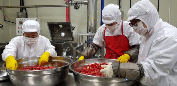이는 코로나19 여파로 학교 개학이 연기되면서 급식용 농산물을 생산하는 농가들이 판매에 어려움을 겪고 있는 가운데, 가공을 통해 딸기 재배 농가들이판로를 개척할 수 있는 방안을 마련한 것이다.