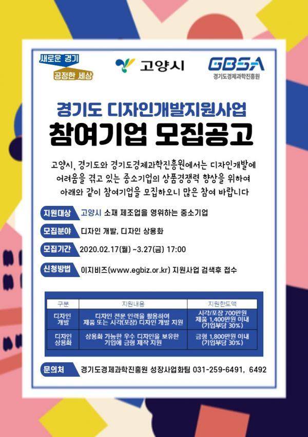 기업지원과장은 “디자인 개발에 애로를 겪고 있는 고양시 중소기업의 많은 참여를 바라며 이 사업을 통해 상품경쟁력 향상 및 신제품 개발을 촉진해 중소기업 경영에 큰 도움이 되길 기대한다"고 말했다.
