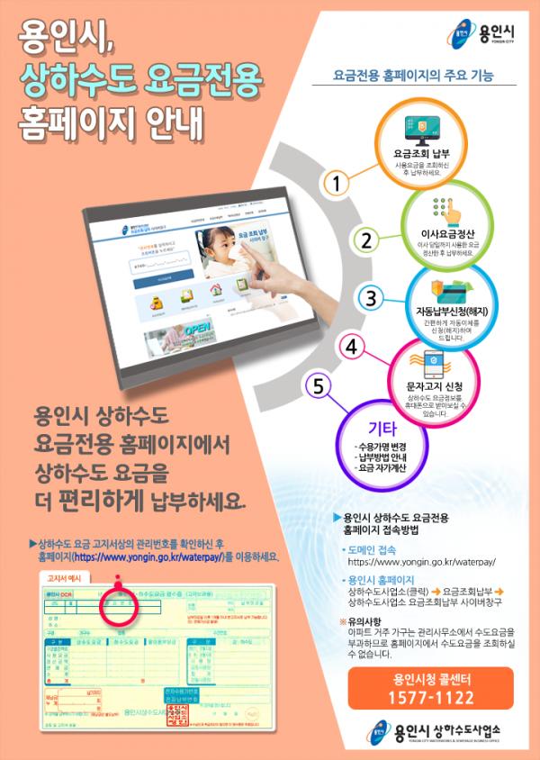 용인시는 시민들이 상·하수도요금을 편리하게 납부하도록 23일부터 사이버창구를 운영한다고 밝혔다.