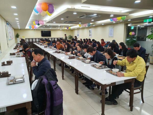 평소에는 마주보고 대화를 하면서 하던 식사를 한 방향으로 식사하는 것이 익숙치 않았고 어색해 하는 직원들도 많았지만 코로나19의 확산 예방을 위해 모두가 같은 마음으로 한 방향 식사를 하게 됐다.
