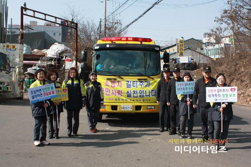 | 소방차 길 터주기로 생명을 지키는 골든타임 확보 캠페인 모습. <ⓒ미디어타임즈> |