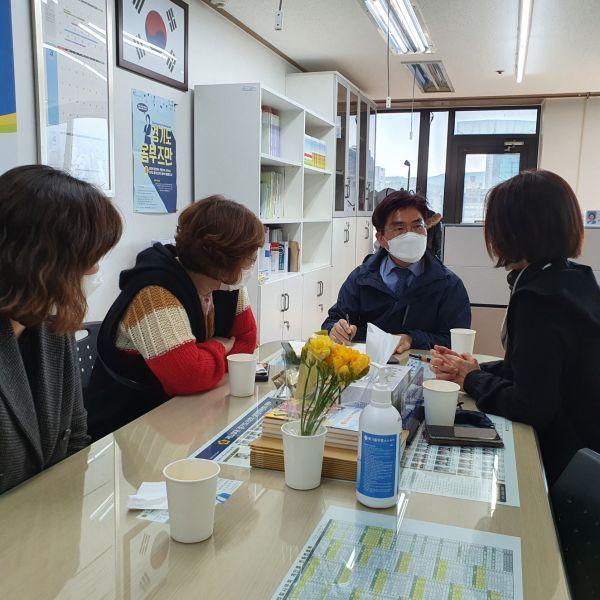 경기도의회 보건복지위원장 정희시 도의원은 지난 18일 경기도의회 군포상담소에서 군포시장애인부모회 이남숙 회장 외 2명과 군포시에서 실시하는 장애인 맞춤형 운동 서비스에 관해 논의하는 자리를 가졌다.