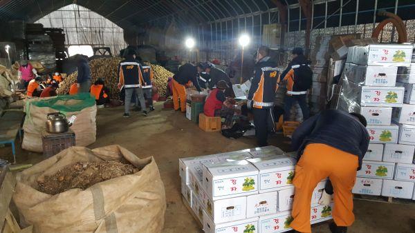 봉사대원들은 해당지역 개별농가 및 저장고에서 선별 및 포장, 출하작업을 지원한다.