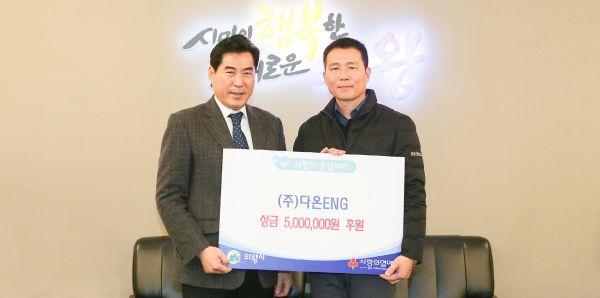 다온ENG에서 코로나19로 어려움을 겪고 있는 저소득 취약계층을 위해 사용해 달라며 현금 5백만원을, 음영도 의왕시체육회 수석부회장은 현금 1천만원을, 의왕도시공사도 사원들의 정성을 모아 150만원을, 청계상가번영회에서도 100만원을 기부했다.