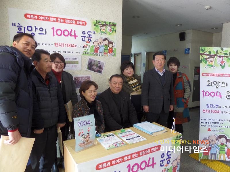 [미디어타임즈=홍기연 기자] 검단2동 지역사회보장협의체(공동위원장 유광희, 신위균)가 어른과 아이가 함께 웃는 검단2동 만들기 일환으로 ‘우리 동의 1004가 되어주세요’ 운동을 전개하고 있다. 이번 모금활동을 위해 동 지역사회보장협의체 위원들은 물론 지역 내 8개 단체장이 모여 지난 9일 발단식을 가졌으며, 주민들에게 사업취지를 설명하는 등 이웃이 이웃을 돕는 활동에 하나 되는 모습을 보였다. ‘우리동의 1004가 되어주세요’ 운동은 주민들의 자발적 모금활동으로 동 주민센터에 지원 부스를 마련했으며, 아파트 앞에도 이동부스를 설치하여 주민 기부문화 확산에 박차를 가할 예정이다. 유광희 검단2동장은 “주민들의 작은 마음들이 모여 어려운 이웃들을 도울 수 있도록 ‘1004 모금활동’을 지속적으로 전개해 어른과 아이가 함께 웃는 검단2동 만들겠다”고 말했다.