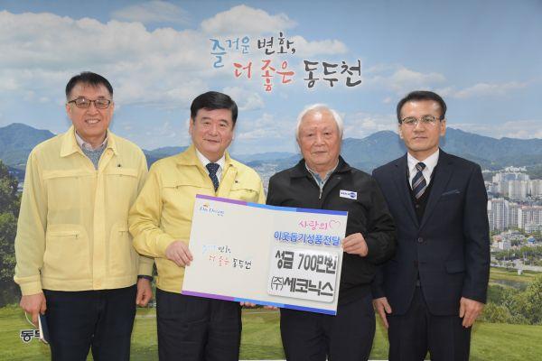 ㈜세코닉스는 지난 18일 동두천시를 방문해 코로나19 확산 방지를 위해 성금 700만원을 기탁했다.