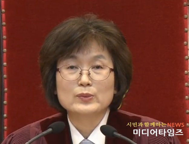 이정미 재판관(헌재소장 권한대행)은 20여 분에 걸쳐 탄핵심판 선고문을 낭독, “재판관 전원의 일치된 의견으로 선언한다”며 “피청구인 대통령 박근혜를 파면한다“고 말했다.