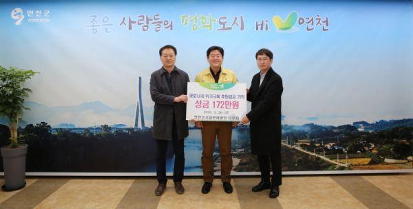 20일 연천군 시설관리공단 단우회에서는 코로나19 위기 극복을 위한 특별성금을 모금해 관내 어려운 이웃을 위해 써달라며 성금 172만원을 연천군에 기탁했다.