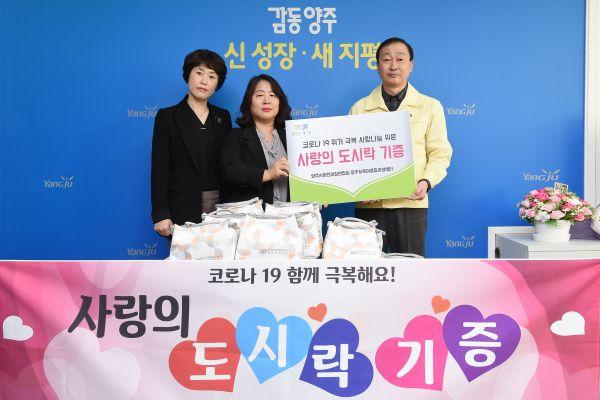 양주시어린이집연합회와 양주시육아종합지원센터는 20일 양주시청과 보건소를 방문, 코로나19 예방에 총력을 다하고 있는 직원들을 위해 격려물품을 전달했다.