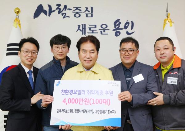 이와 관련 귀뚜라미 신갈점, 경동나비엔 서부점, 대성셀틱 기흥수지점 등 3곳 대리점이 관내 저소득층 100가구의 친환경보일러 설치 자부담 비용을 후원키로 했다.