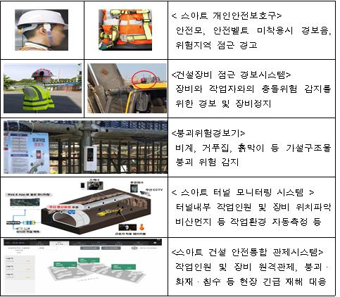 안전관리비 항목에 무선통신 및 설비를 이용한 안전관리체계 구축·운용비용을 추가해, 건설현장에 사물인터넷, 빅데이터 등을 활용한 스마트 안전장비 도입 등 첨단기술 활용 근거를 마련했다.